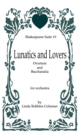 Lunatics and Lovers, Overture and Bacchanalia from Shakespeare Suite #1, a joyful and effervescent romp through the ecstasy and madness of love, emerges from Linda Robbins Coleman’s twenty years in theatre. Based on her Kennedy Center ACTF Award-winning overture and incidental music for the 1997 Drake Theatre production of Shakespeare's romantic fantasy, "A Midsummer Night's Dream," and her 1979 score for “A Merchant of Venice,” the suite ranges from the unbounded delight of new love to the melancholy of passionate misunderstandings; and from a bacchanalian rite to the tenderness and triumph of true love.